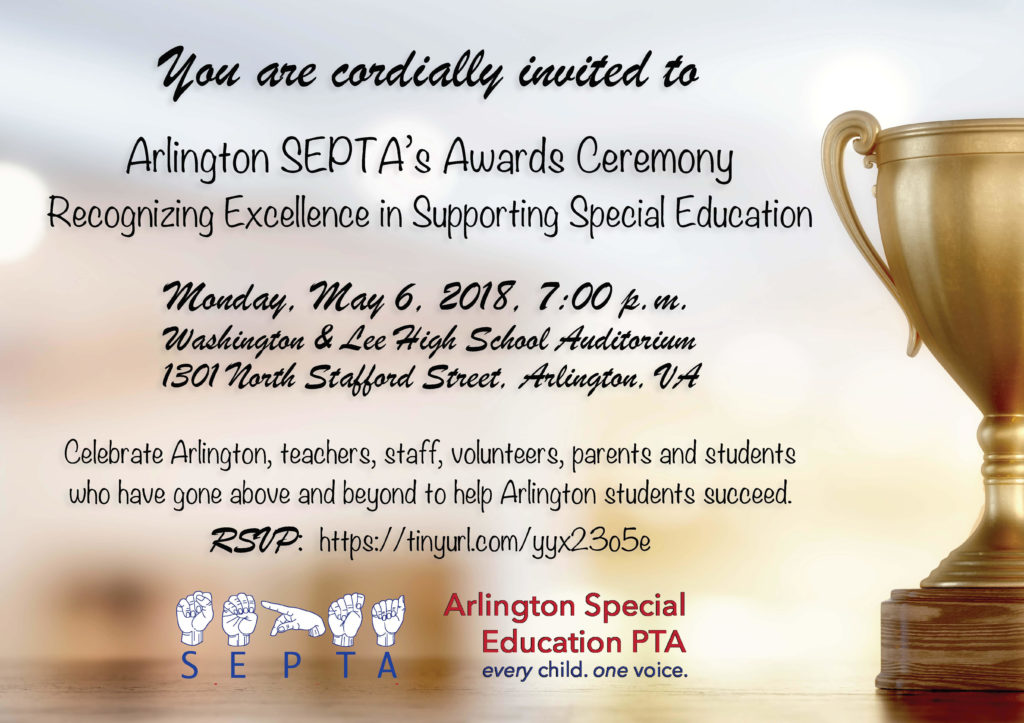 The Arlington Special Education PTA is pleased to announce the nominees for the 2018-19 Awards for Excellence in Special Education.
