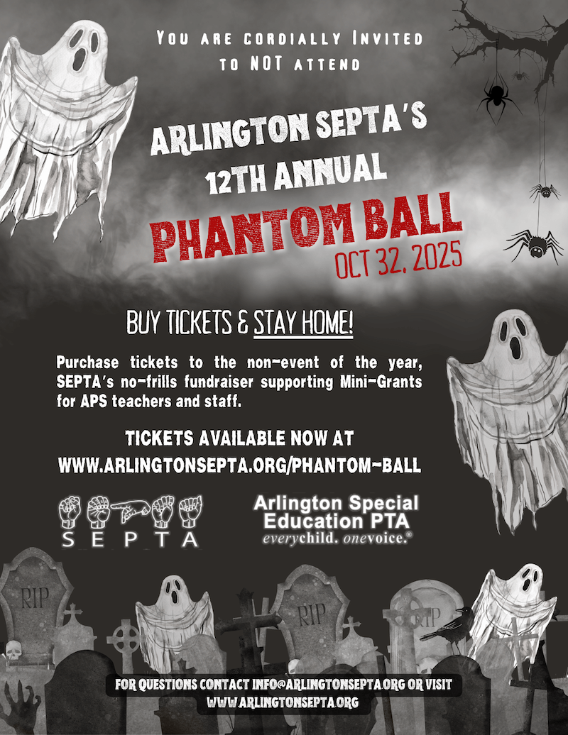 It’s an event that never takes place, a no-frills fundraiser! It’s your chance to support Arlington SEPTA without leaving the comfort of your home. Instead of spending money on catering your entire donation goes toward our mini-grants for APS teachers and staff.