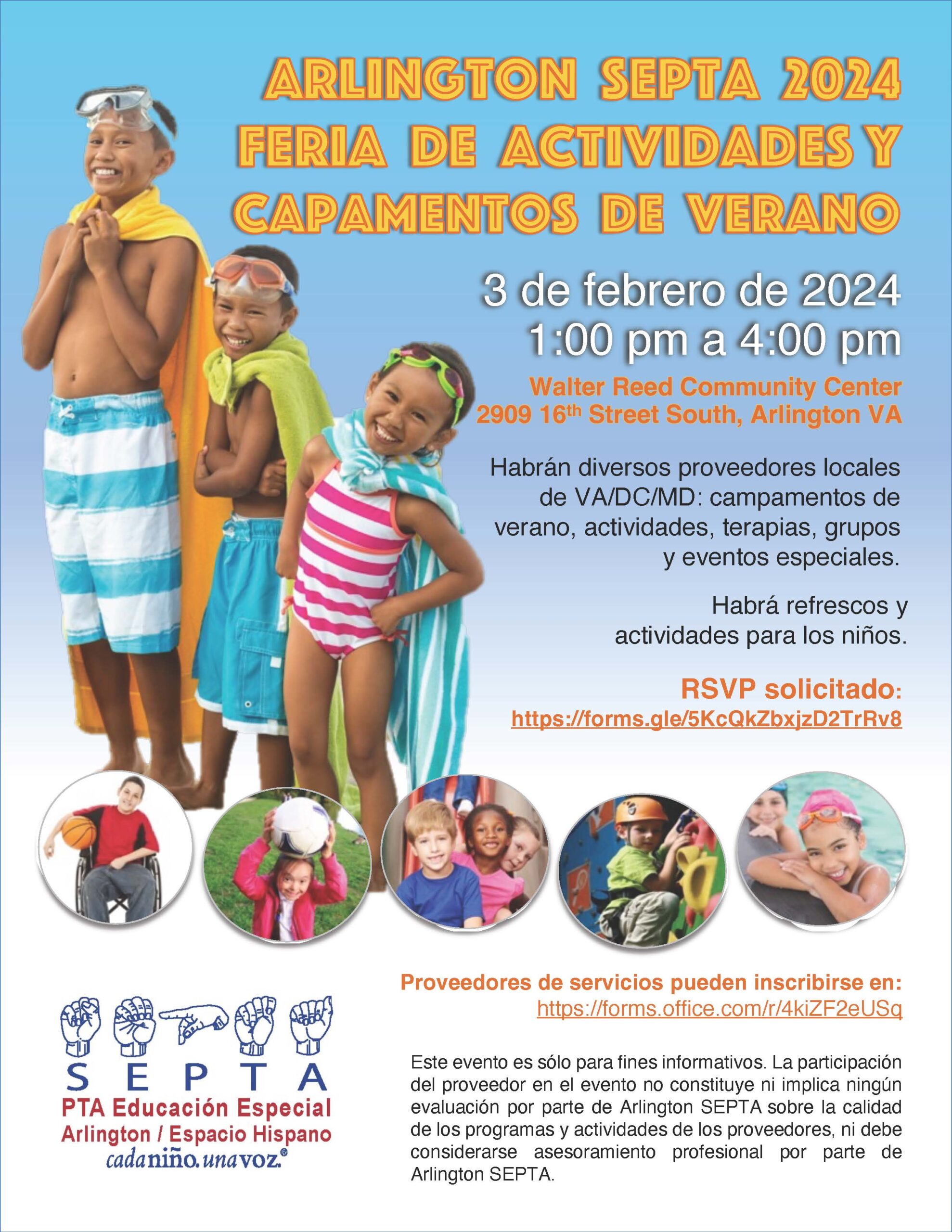 Este evento es sólo para fines informativos. La participación del proveedor en el evento no constituye ni implica ningún evaluación por parte de Arlington SEPTA sobre la calidad de los programas y actividades de los proveedores, ni debe considerarse asesoramiento profesional por parte de Arlington SEPTA.