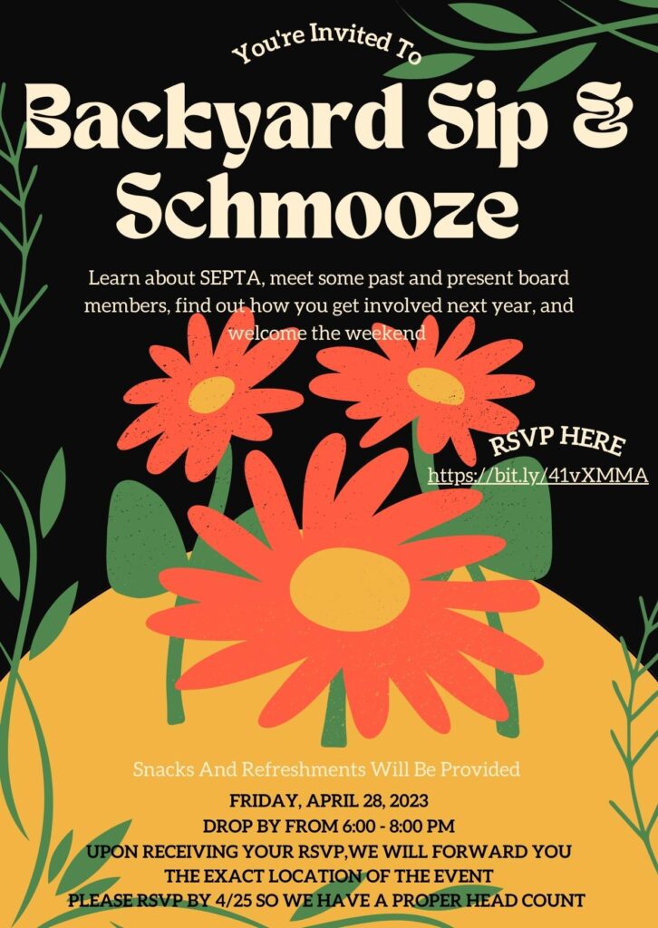 We will be getting together for an informal, casual, backyard gathering next Friday night. We invite you to consider joining the Arlington SEPTA leadership team for the 2023-24 school year and help make a positive impact next year. Either come to learn about various ways to become more active (it can be as much or as little as you have the bandwidth for) or just come to chat with old friends and meet some new friends. Hope you can make it!